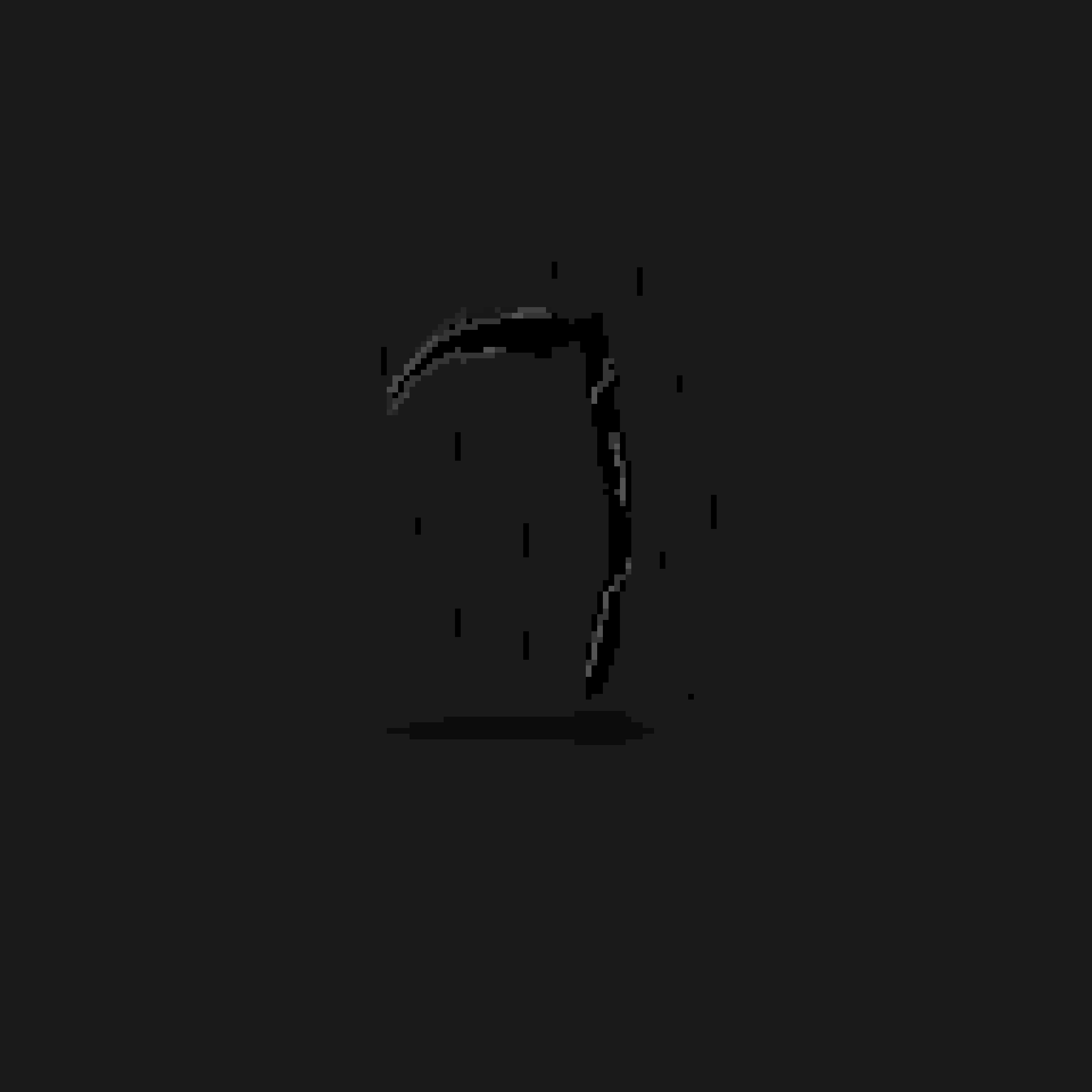 A dark, pixel-art scythe animation with a sharp, ominous presence.